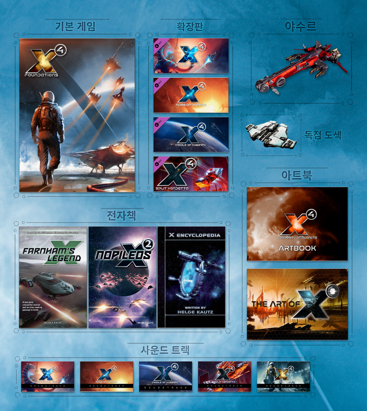 더 자세한 설명은 저희의 새로운 url=https://store.steampowered.com/bundle/30503/]X4: 행성 공동체 수집가 에디션[/url] 번들 소개 페이지에서 찾아보실 수 있습니다. 여러분의 성원에 감사드립니다!